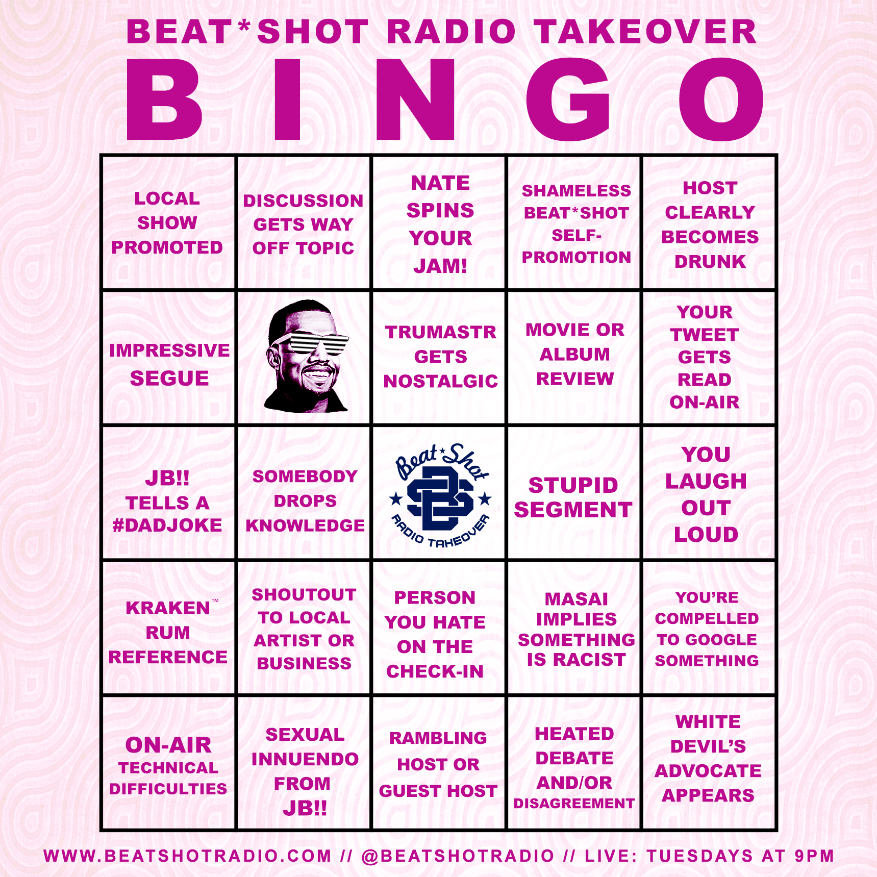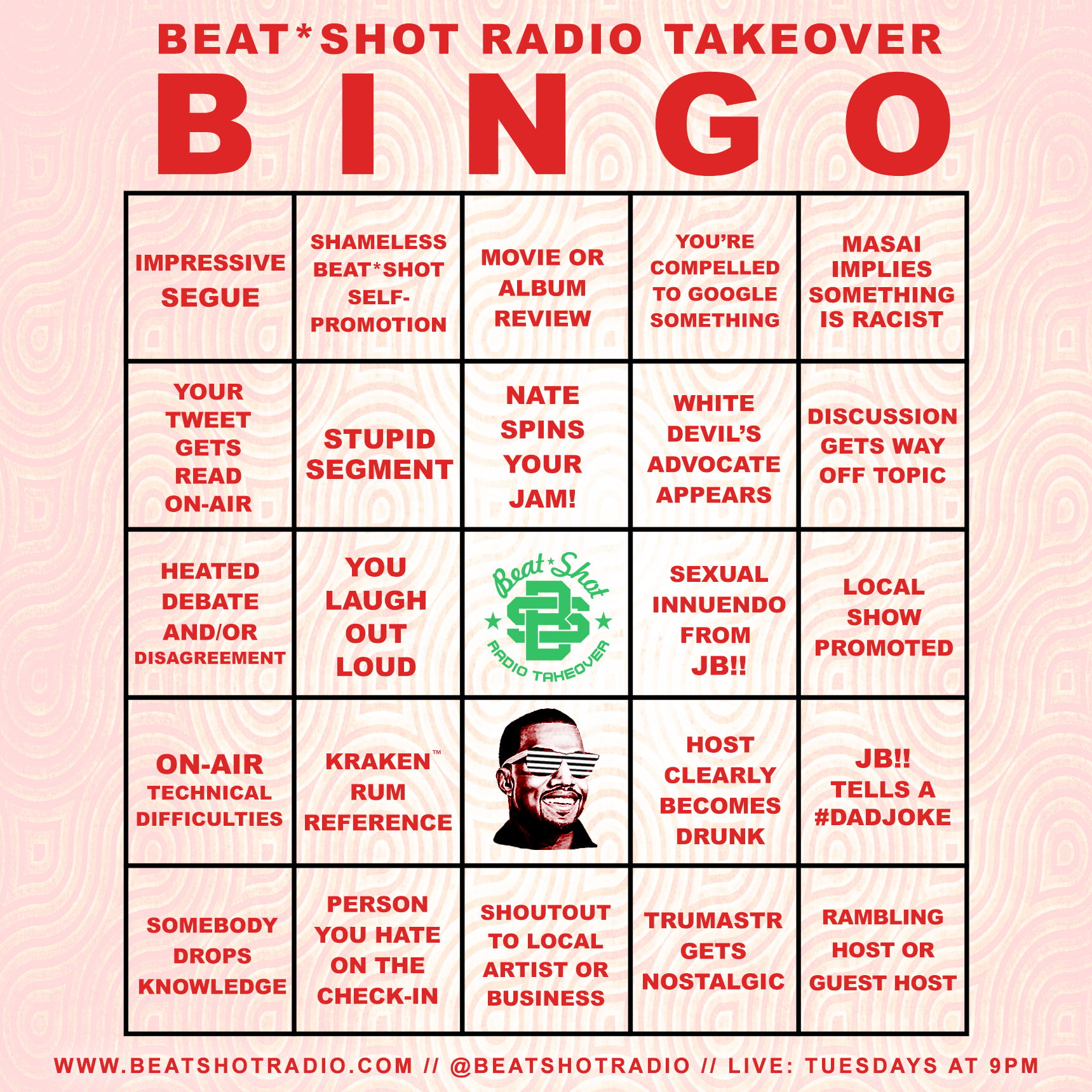 (Bonus) Tweet us your completed BINGO cards @BeatShotRadio and we may celebrate for you on the air.